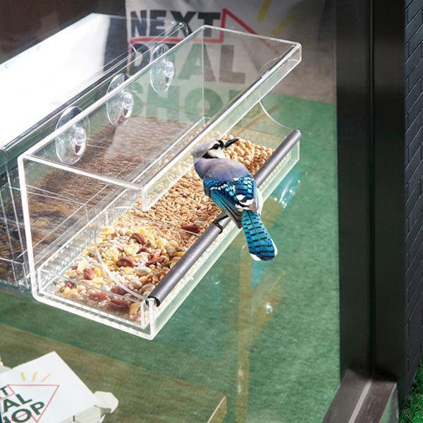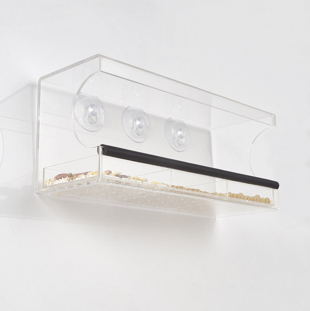 ¡Dé la bienvenida a los pájaros a su hogar con este comedero para pájaros de ventana y acérquese a sus pájaros favoritos! Está hecho de acrílico transparente duradero y cuenta con una bandeja extraíble, lo que proporciona una experiencia de visualización clara y fácil de reponer alimentos.